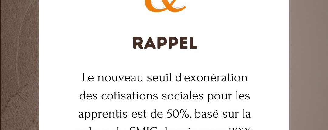 Depuis mars 2025, le seuil d’exonération des cotisations sociales pour les apprentis a été abaissé de 79 % à 50 % du SMIC.   Concrètement, cela signifie que les employeurs doivent désormais s’acquitter de cotisations sociales sur une part plus importante de la rémunération des apprentis.   Objectif de cette mesure : réduire le coût